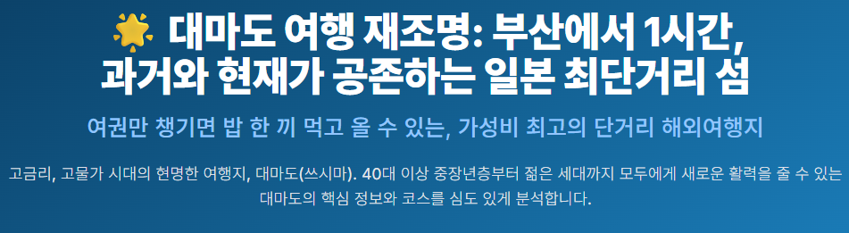 💡 '가까운 일본' 대마도 여행의 특급 장점과 최신 날씨