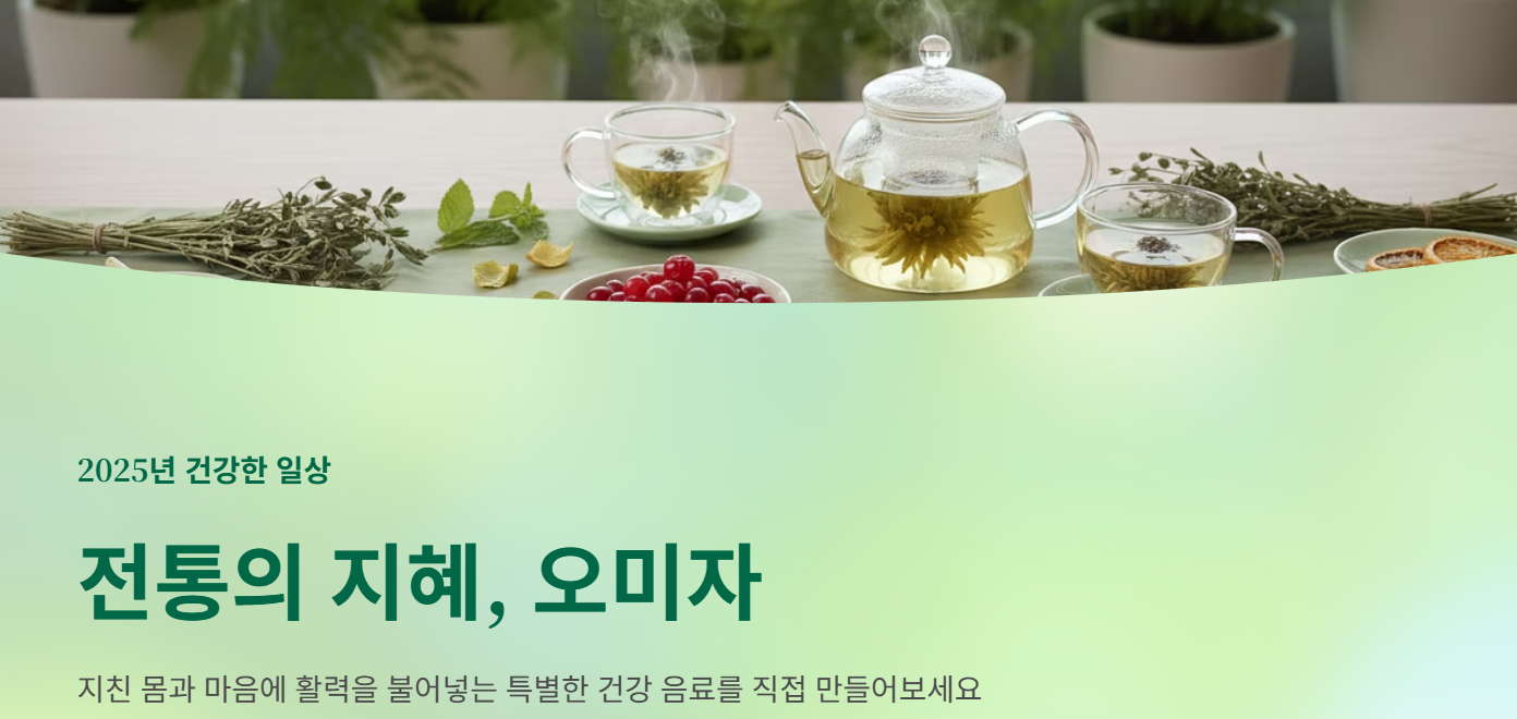 - 따뜻한 오미자차: 추운 날씨엔 따뜻하게 데워 몸을 녹여주세요. 감기 기운이 있을 때 특히 좋답니다.