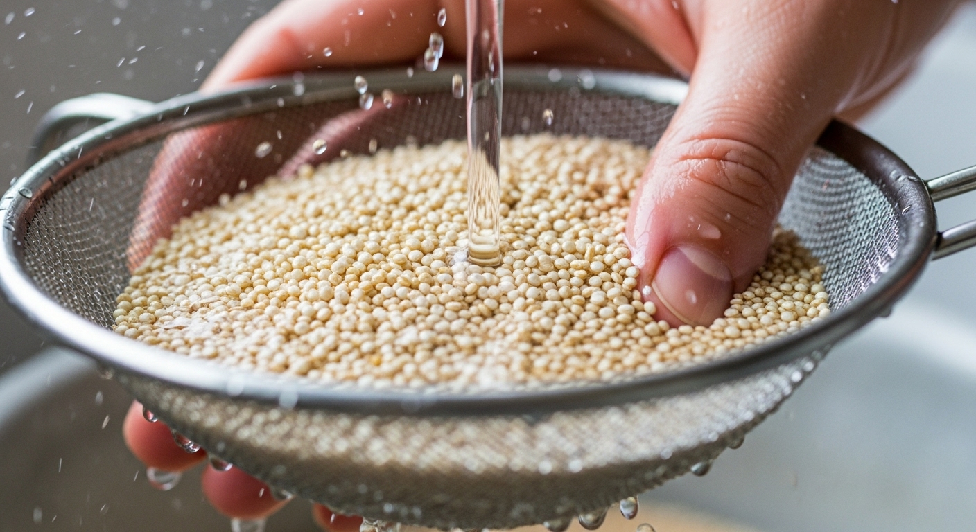 - 깨끗하게 헹구기: 큐노아를 찬물에 1~2회 깨끗이 헹궈 사포닌을 제거합니다.