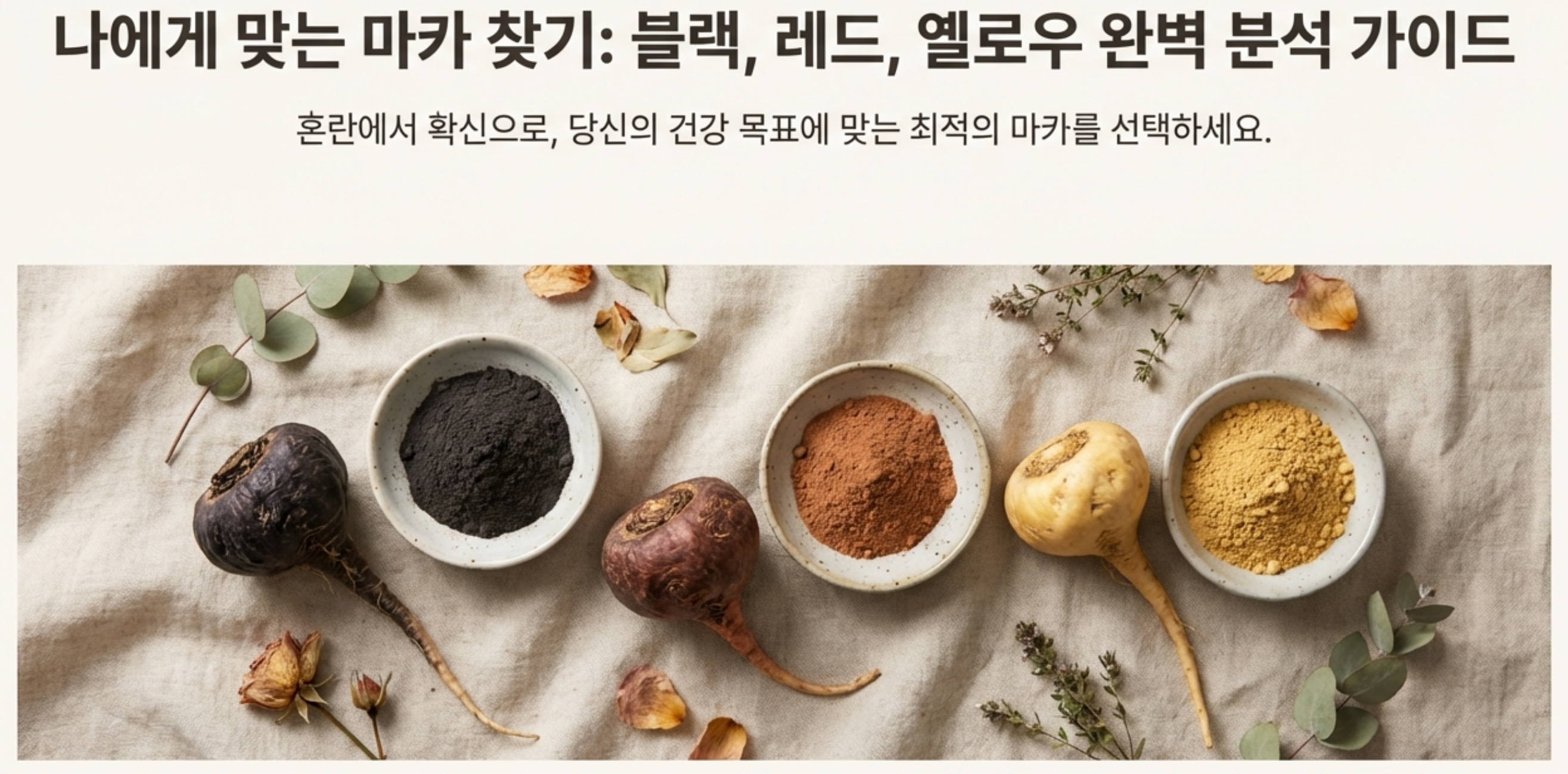 건강한 라이프스타일에 대한 관심이 그 어느 때보다 뜨겁죠. 특히 페루의 산삼이라 불리는 '마카'는 남녀노소 할 것 없이 많은 분들의 주목을 받고 있습니다. 하지만 블랙, 레드, 옐로우 마카 중 어떤 것이 나에게 맞는지 고민되시나요? 오늘은 마카 종류별 효능부터 부작용 예방 꿀팁, 그리고 나에게 딱 맞는 마카를 고르는 방법까지, 제가 직접 경험하고 연구한 모든 것을 자세히 알려드릴게요!