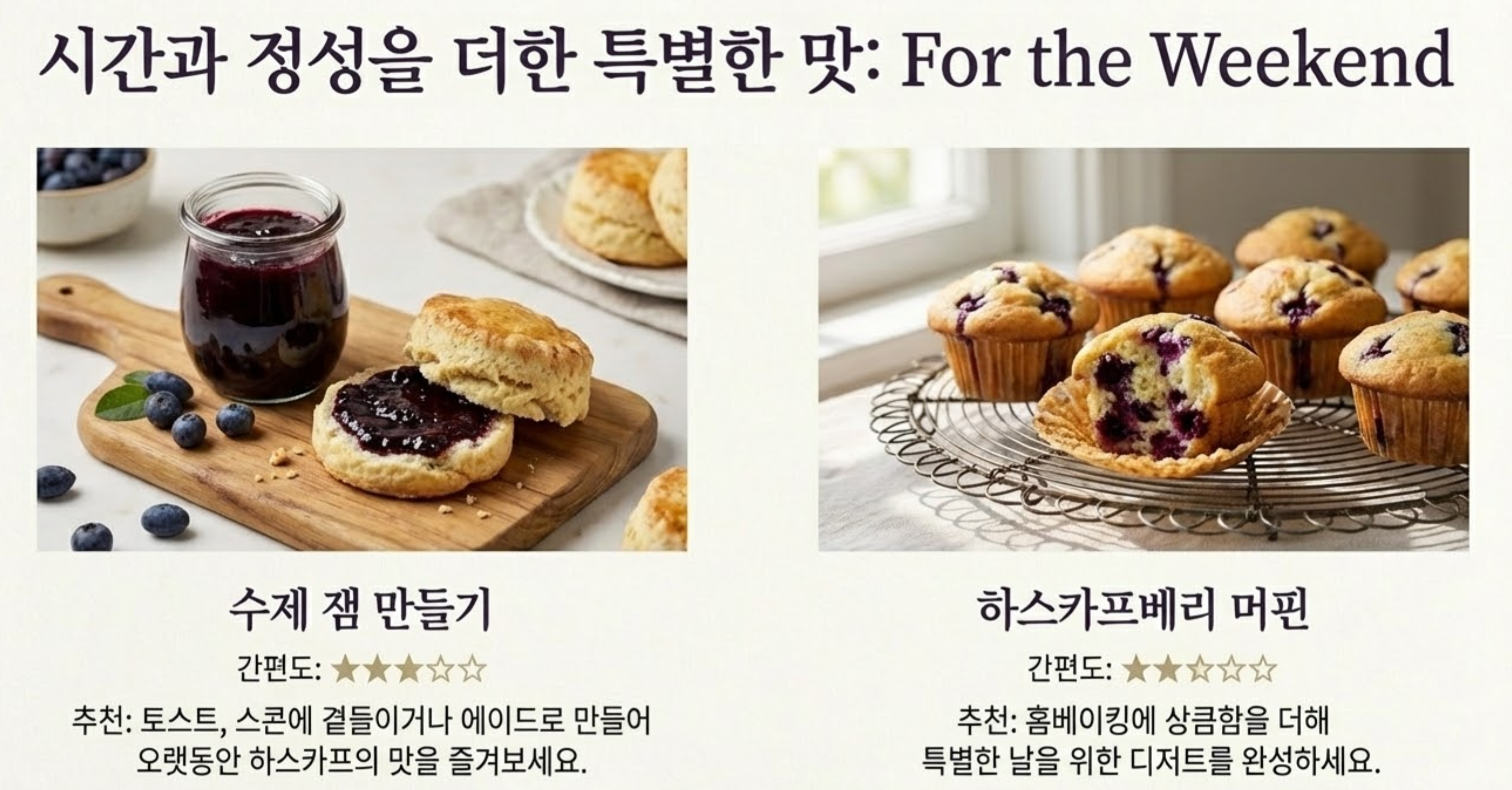 - 5. 베이킹 활용: 머핀, 파이, 케이크 등 베이킹에 활용하면 색다른 맛과 향을 더할 수 있습니다. 하스카프베리가 들어가면 상큼함이 더해져 디저트의 맛을 한층 업그레이드해 줄 거예요.