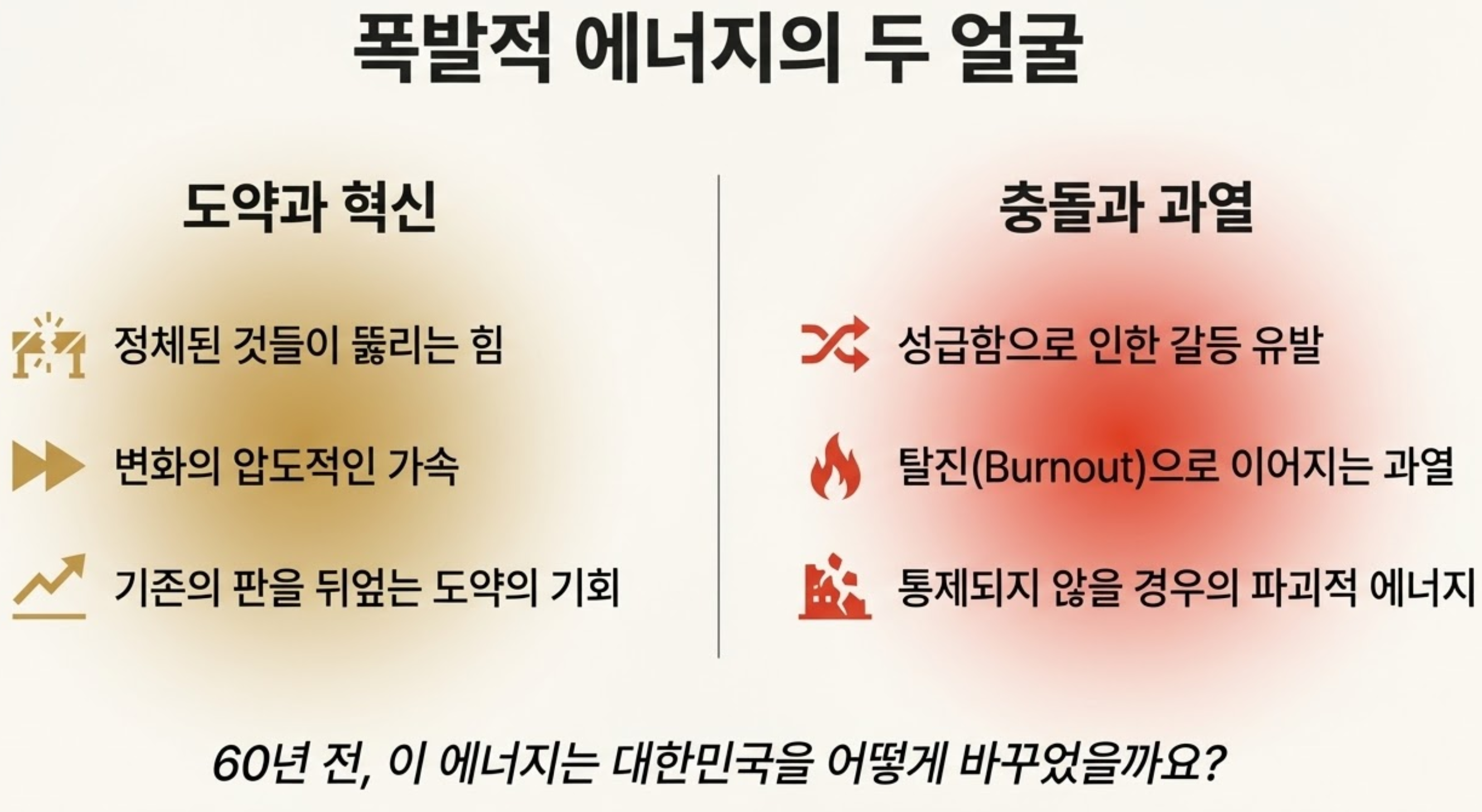 💡 상담학적 관점에서 볼 때, '불'과 '말'의 만남은 폭발적인 에너지를 의미합니다. 말 자체도 역동적인데 거기에 불까지 붙었으니 오죽할까요? 이는 정체되어 있던 것들이 뚫리고, 변화의 속도가 무시무시하게 빨라짐을 암시합니다. 좋게 말하면 '혁신'과 '도약'이지만, 자칫하면 '충돌'과 '과열'이 될 수도 있다는 뜻입니다. 60년 전, 이 에너지가 대한민국을 어떻게 바꿔놓았는지 살펴보면 소름이 돋을 정도입니다.