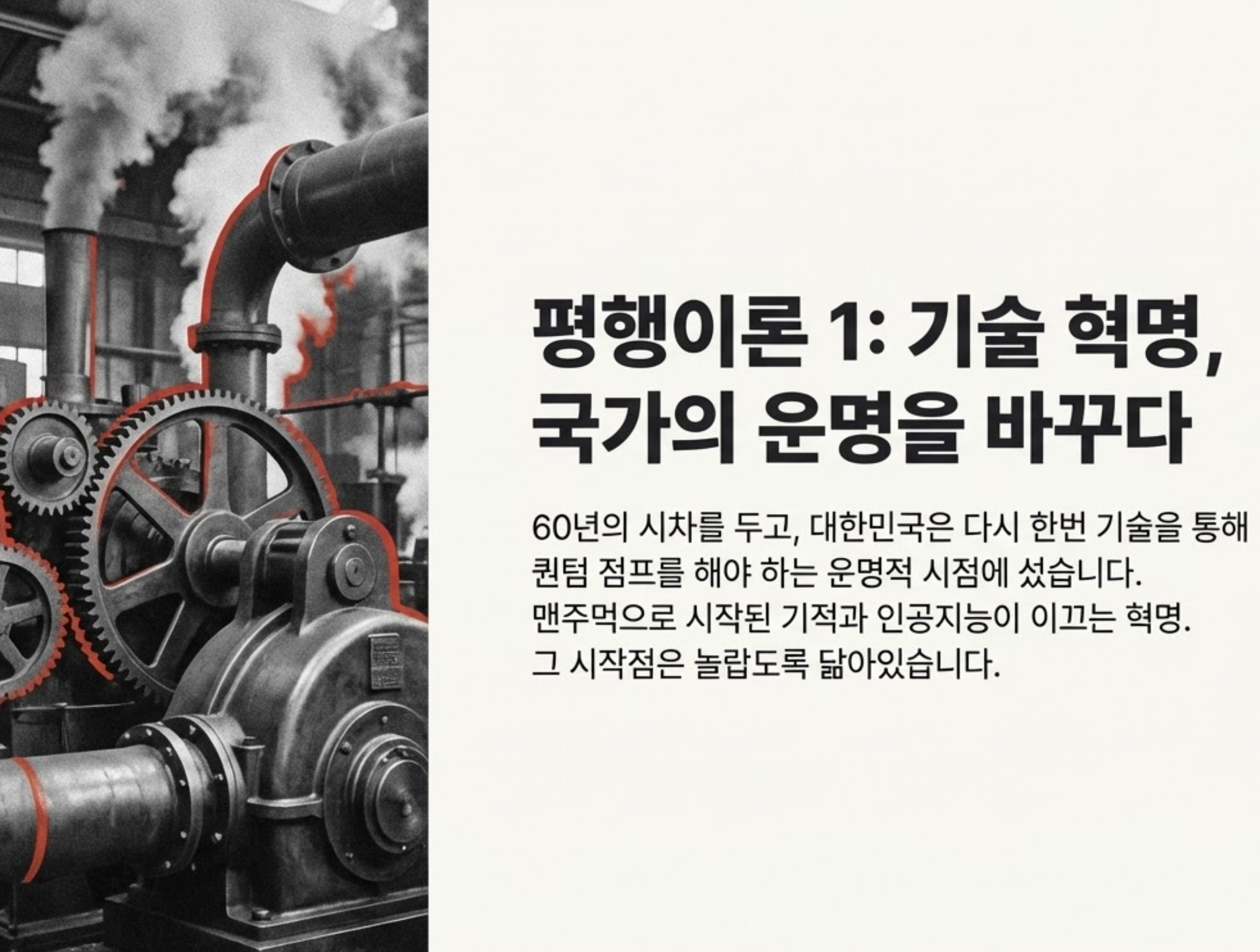 그로부터 60년 후, 2026년은 어떨까요? 지금 우리는 'AI(인공지능) 혁명'의 한복판에 서 있습니다. 1966년이 맨주먹으로 공장을 세운 해라면, 2026년은 인공지능과 우주 산업이 폭발적으로 성장하며 우리의 일상을 송두리째 바꾸는 '제2의 기술 혁명기'가 될 것입니다. 60년의 시차를 두고 대한민국이 또 한 번 기술로 퀀텀 점프를 해야 하는 운명적인 타이밍이 찾아온 것이죠.